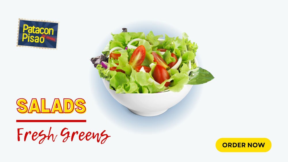 Bed of Green Leaf Lettuce, tomatoes, pickled red onions, fresh avocado slices, a cup of a house salsa verde & a side of plantain chips.